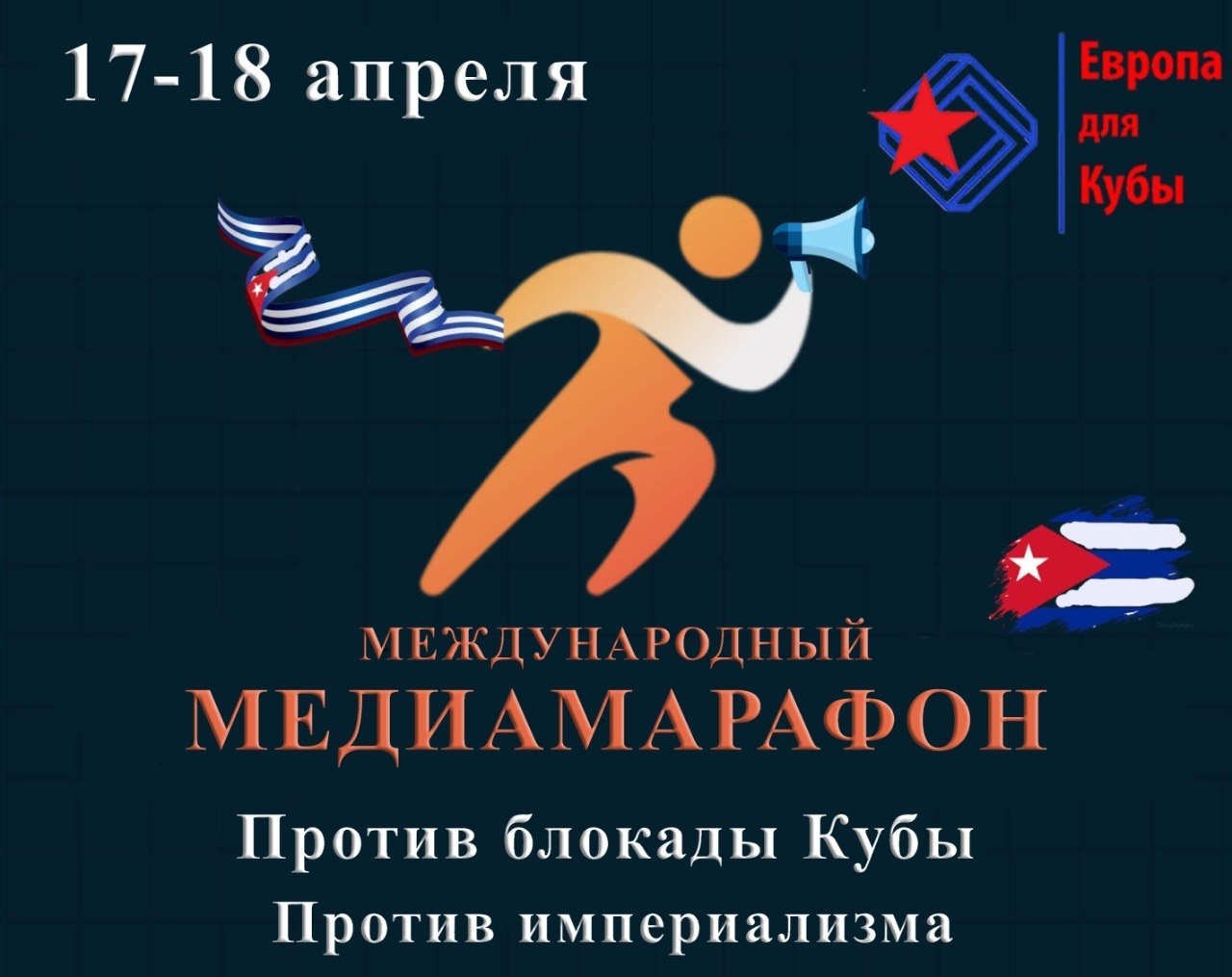 С 20:00, 17 апреля до 20:00, 18 апреля 2026 года (Центральное Европейское Время – UTC, Madrid, París, Berlin, Roma, и т.д.). По московскому времени медиамарафон начнется в 22:00 17 апреля и завершится в 22:00 18 апреля 2026 года. Временные отрезки, когда в эфире будет работать российская команда – канал «Европа для Кубы» из России (т.е. программа будет вестись на русском и испанском языках) будут опубликованы дополнительно.